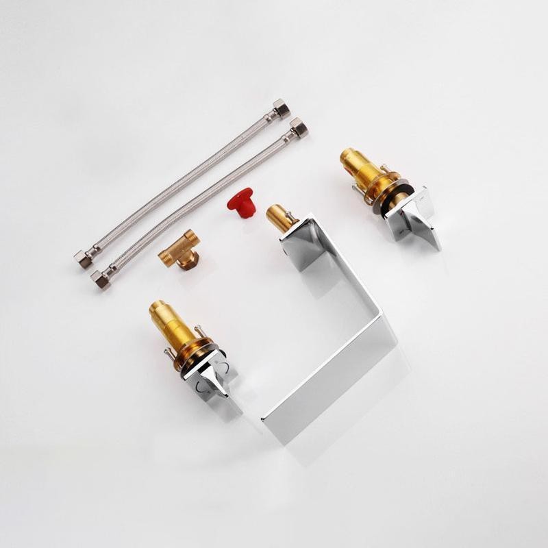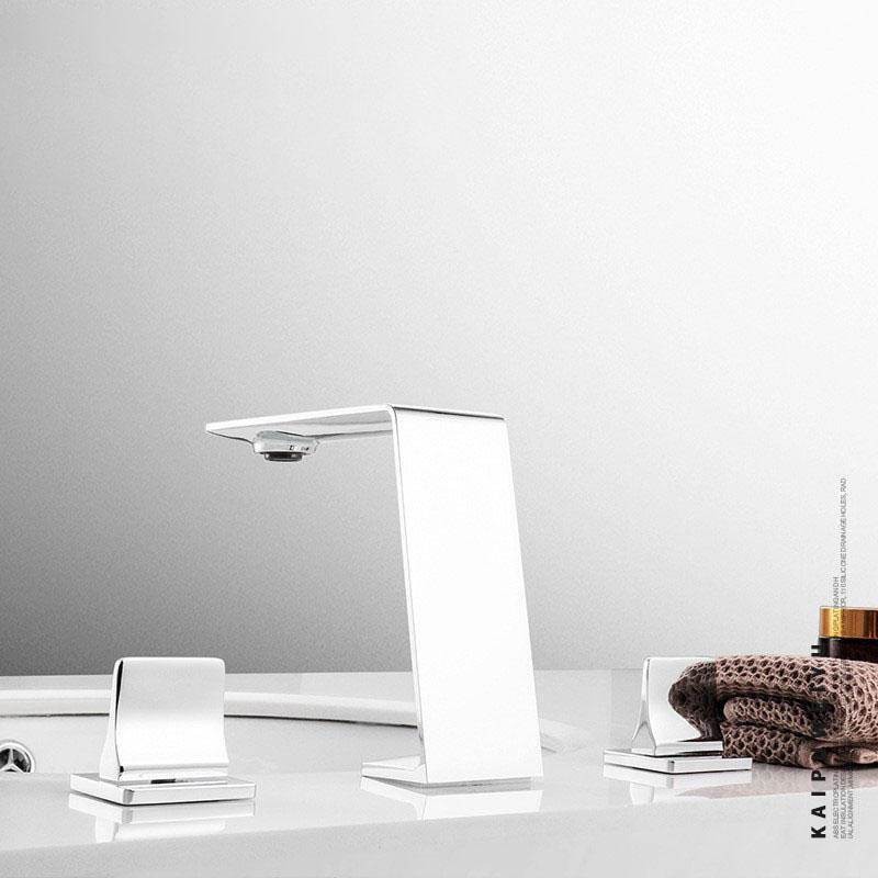 Chrom Zweigriffe Weit verbreitete Waschtischarmatur für Badezimmer Waschbecken, 3 Löcher
