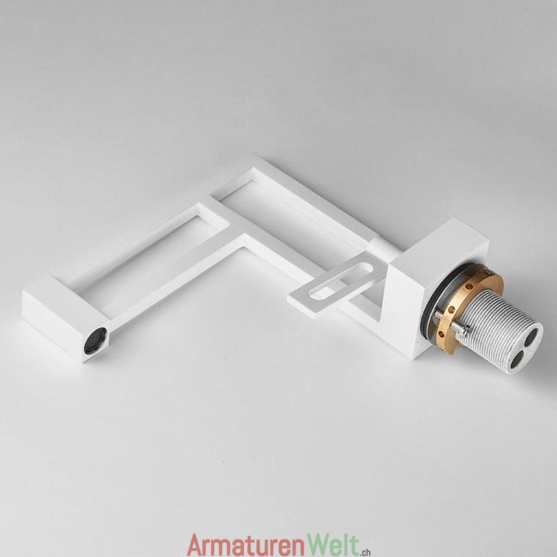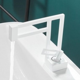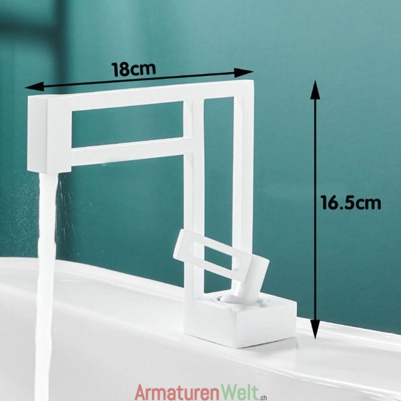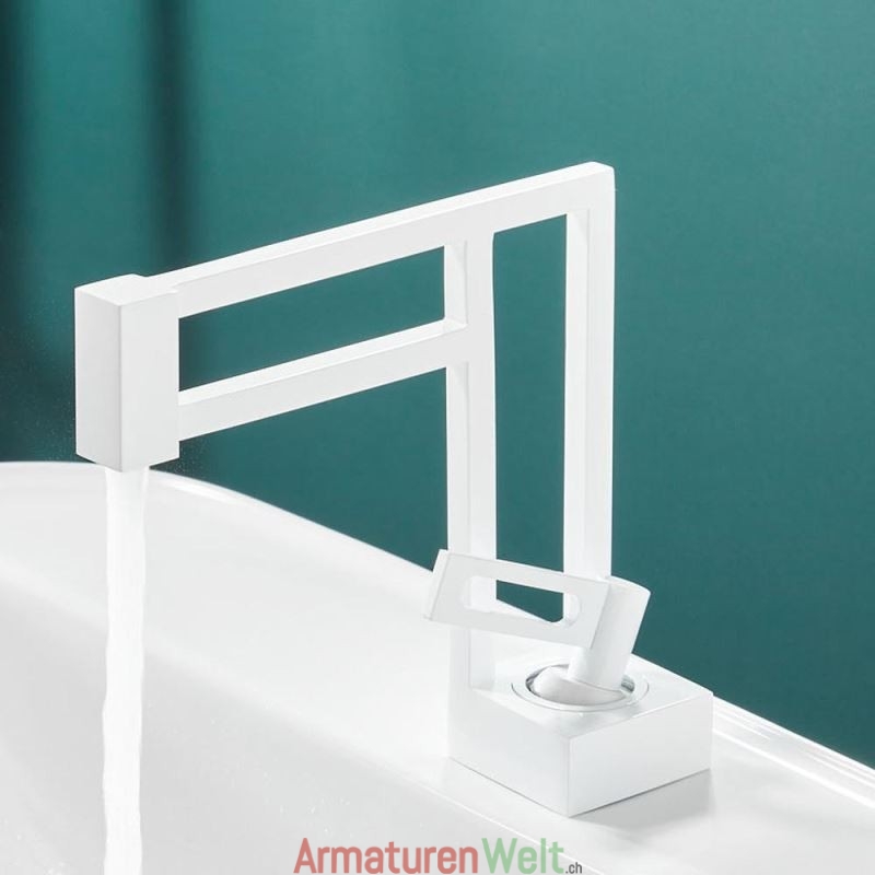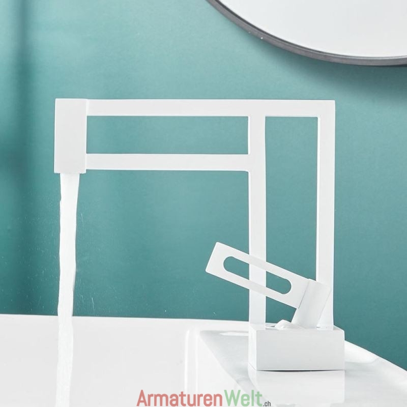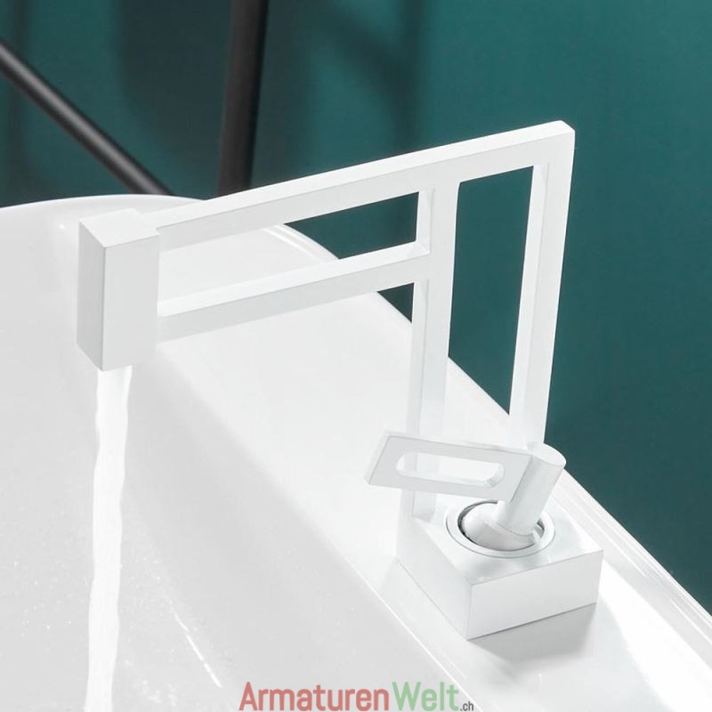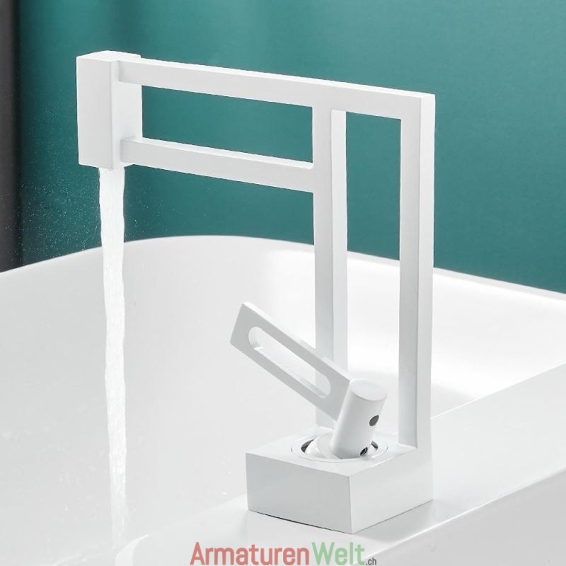 Einloch-Waschbeckenhahn mit architektonischem Design, weiß, geometrisches Design, mit einem Griff