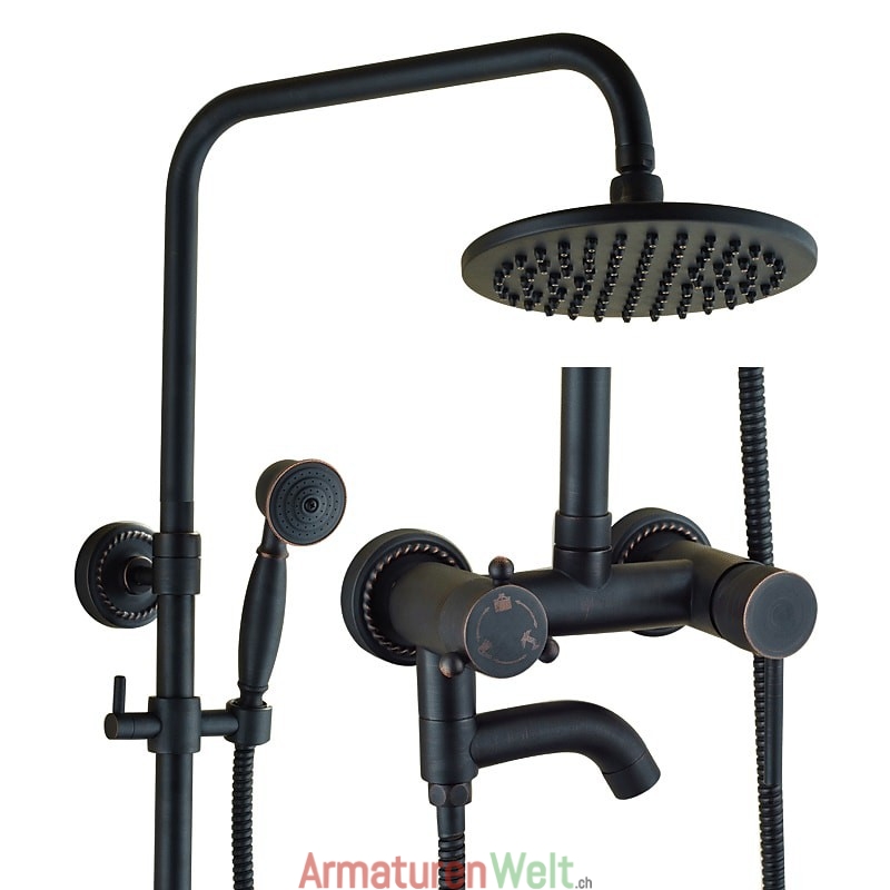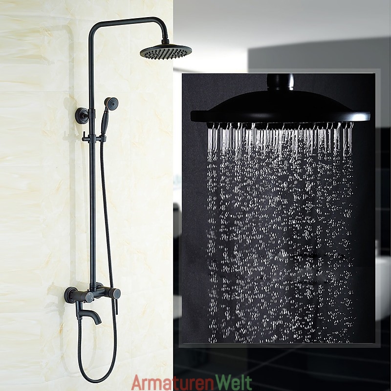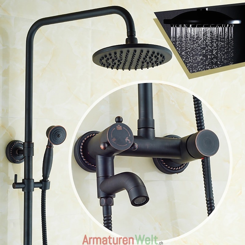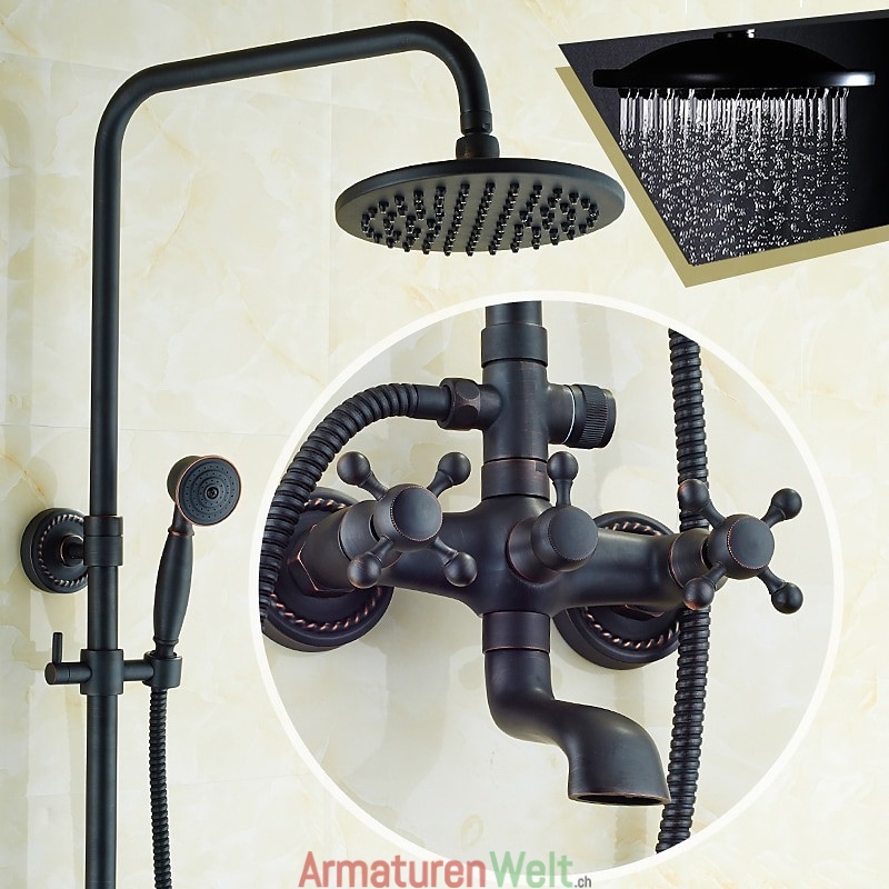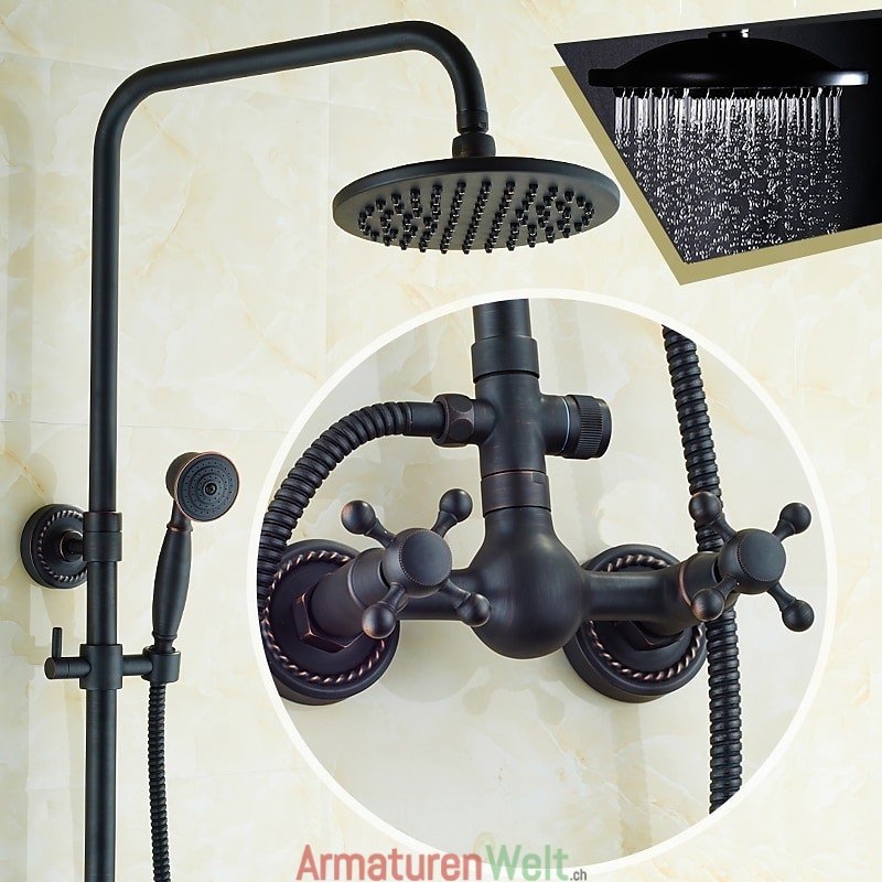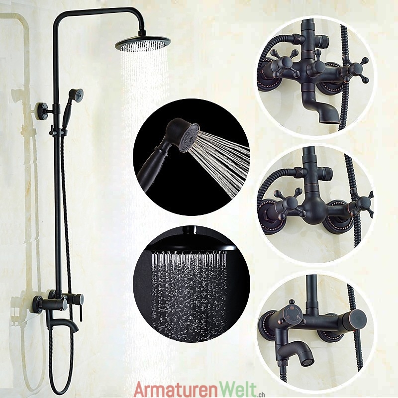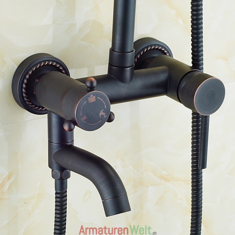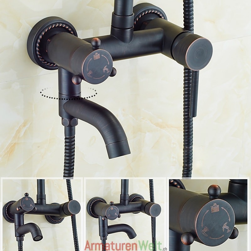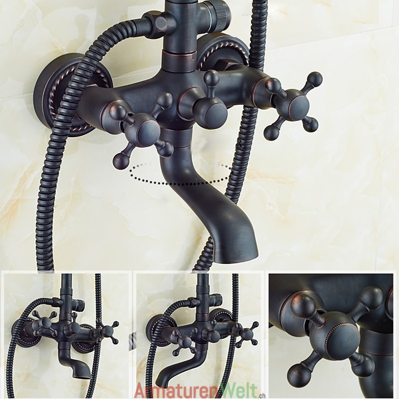 Stil:Vintage-Stil,Landhausstil,Funktionen:Dusche mit mehreren Sprühdüsen,Regendusche,ausziehbar,Handbrause inklusive,Wasserhahntyp:Regenduschkopfsystem,Duschsystem,Installationstyp:Außenmontage,Anzahl der Griffe:Zwei Griffe,Kalt- und Warmschalter:Ja,Ventiltyp:Messingventil,Oberfläche:Galvanisiert,Montagelöcher und Griffe:Zwei Griffe, drei Löcher,