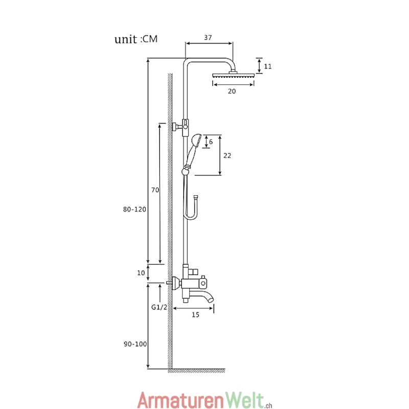 Regendusche enthalten:Ja,Brausearm enthalten:Ja,Handbrause enthalten:Ja,Bodysprays enthalten:Ja,Ventil enthalten:Ja,Abfluss enthalten:Ja,