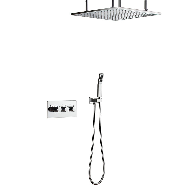 Stil:Zeitgenössisch,Funktionen:Regendusche,Wasserhahntyp:Duschset,Installationstyp:Wandmontage,Anzahl der Griffe:Drei Griffe,Kalt- und Warmschalter:Ja,Ventiltyp:Keramikventil,Finish:Chrom,Installationslöcher und Griffe:Drei Griffe, drei Löcher,Wasserdruck (Mpa):3~4,Geeignete Räume:Badezimmer,