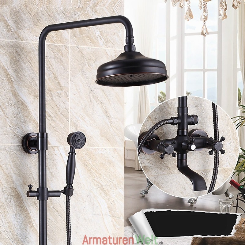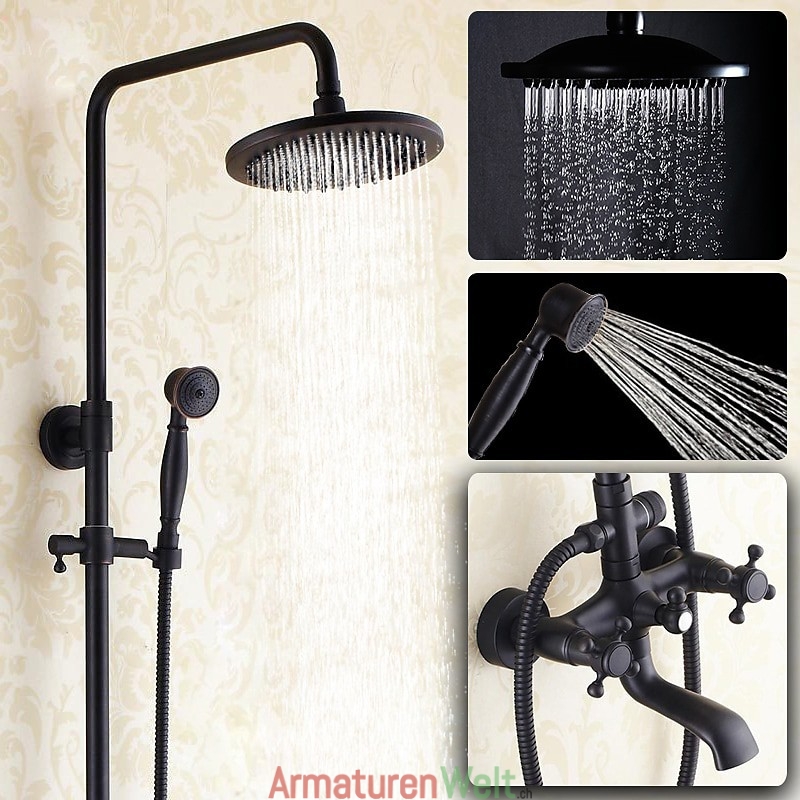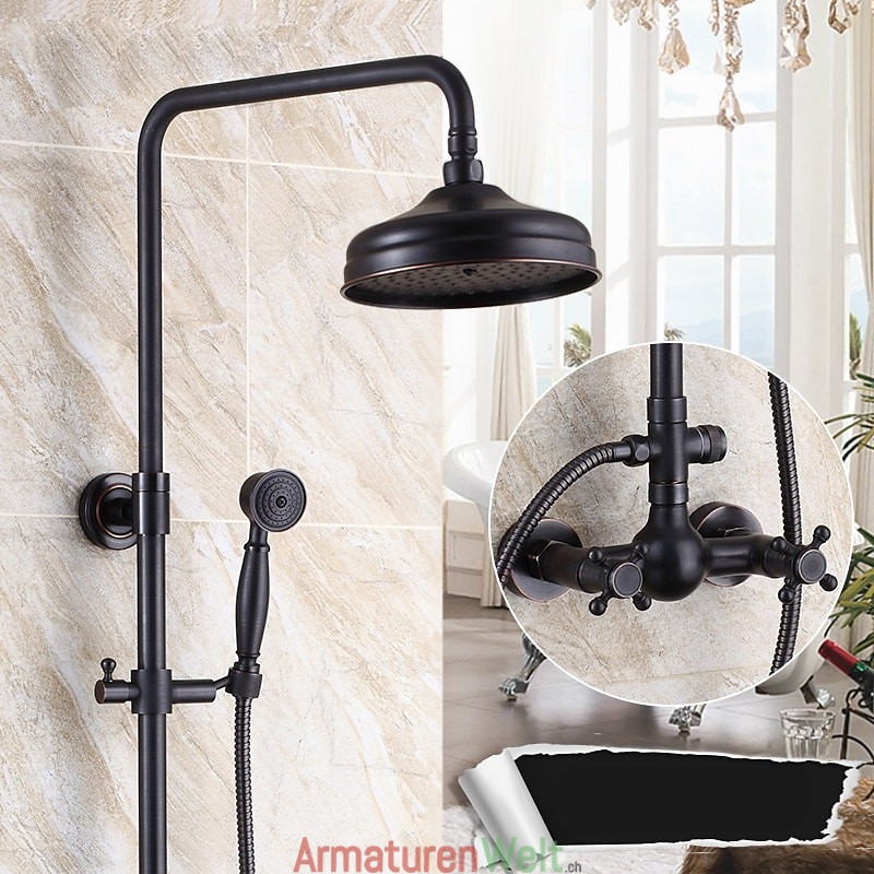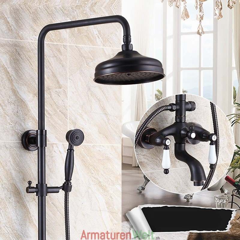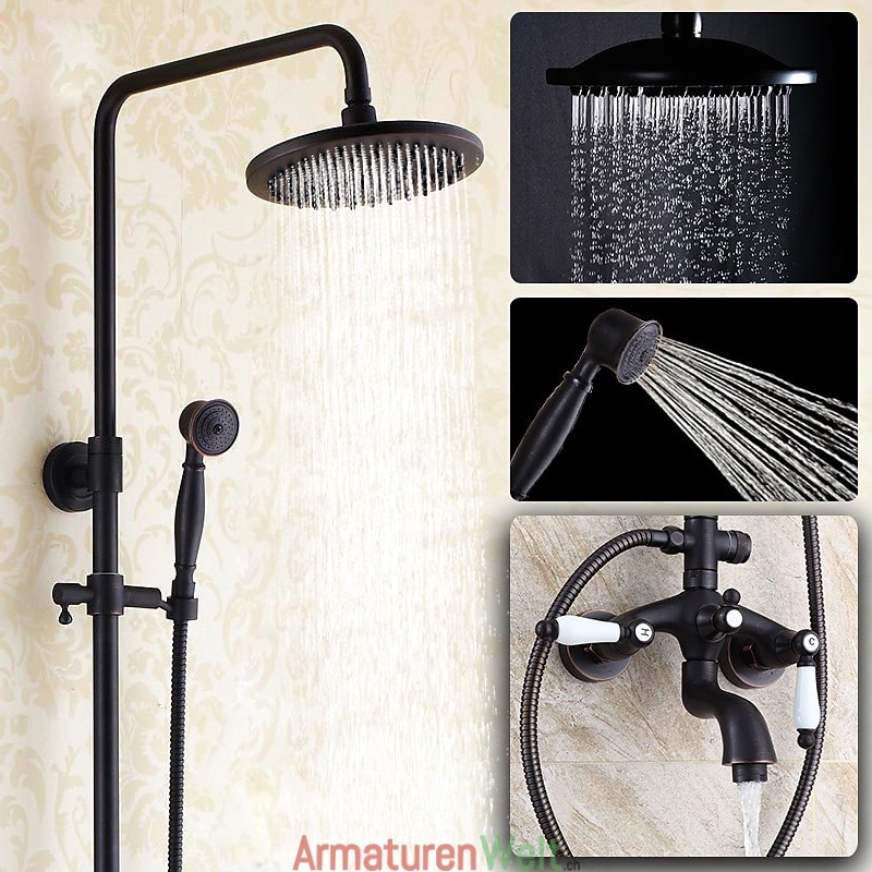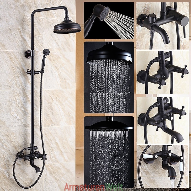 Stil:Vintage-Stil,Antik,Funktionen:Dusche mit mehreren Sprühdüsen,ausziehbar,Handbrause inklusive,Wasserhahn Typ:Regenduschkopfsystem,Duschsystem,Installationstyp:Außenmontage,Anzahl der Griffe:Zwei Griffe,Kalt- und Warmschalter:Ja,Ventiltyp:Messingventil,Finish:Galvanisiert,Besonders ausgewählte Produkte:COD,Installationslöcher und Griffe:Zwei Griffe, drei Löcher,
