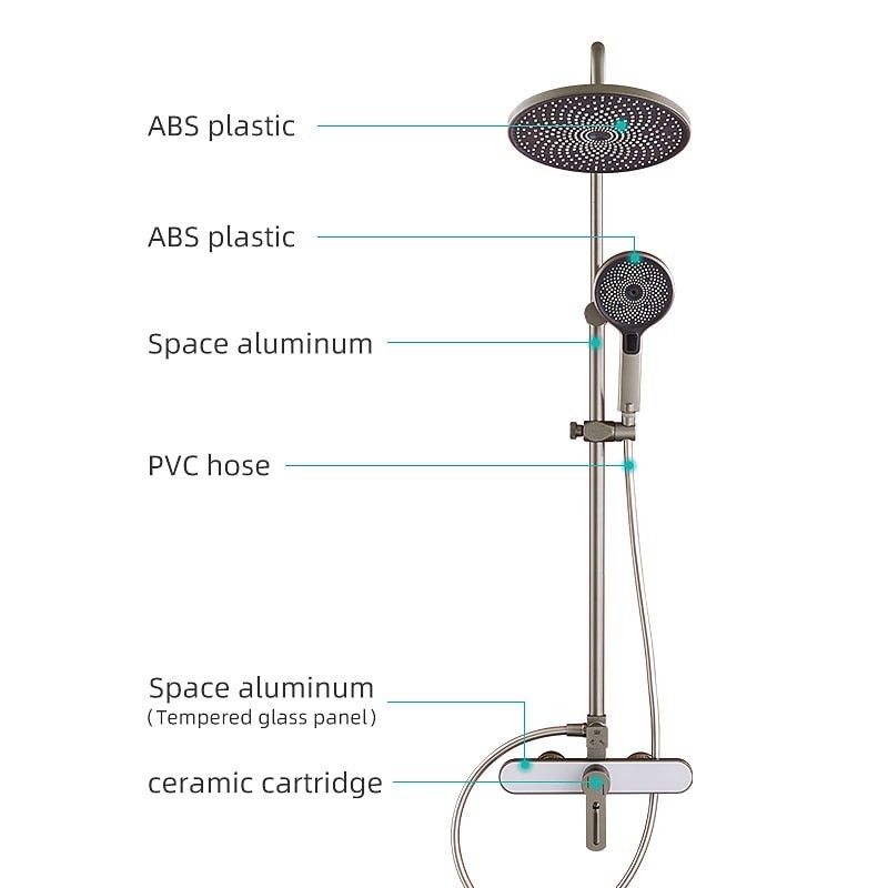 Griffmaterial:Aluminiumlegierung,Material der Handbrause:ABS Klasse A,Material des Wasserhahnkörpers:Aluminium,