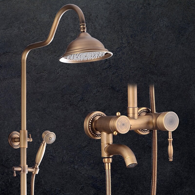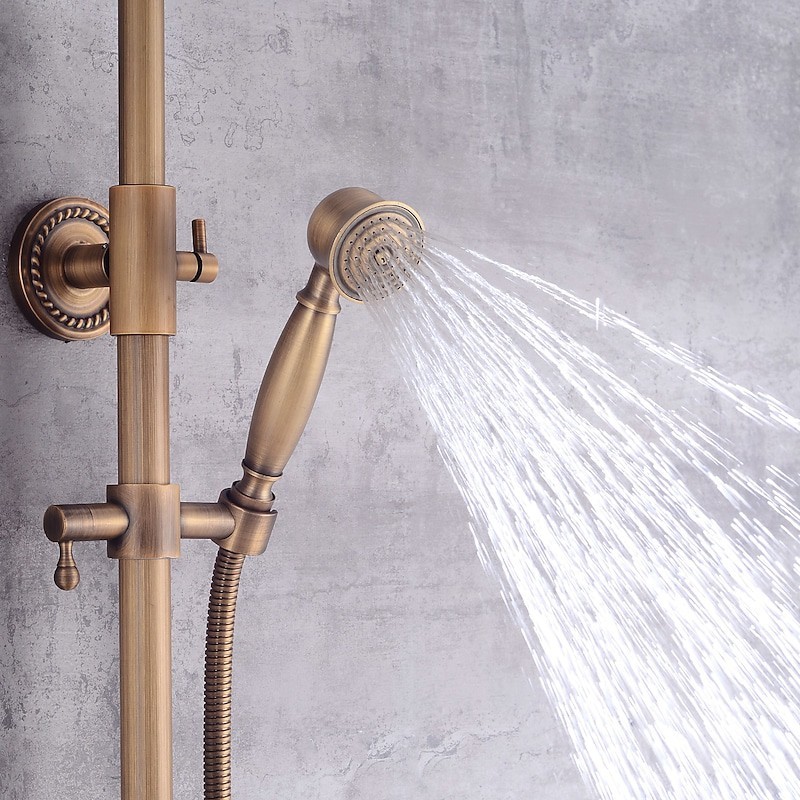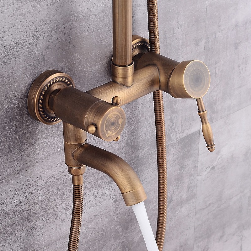 Stil:Vintage-Stil,Landhausstil,Funktionen:Wasserfall,Dusche mit mehreren Sprühdüsen,Regendusche,Ausziehbrause,Handbrause inklusive,Wasserhahntyp:Regenbrausensystem,Duschsystem,Duschhahn,Installationstyp:Außenmontage,Kalt- und Warmschalter:Ja,Ventil Typ:Keramikventil,Finish:Antikes Messing,Spezielle ausgewählte Produkte:COD,