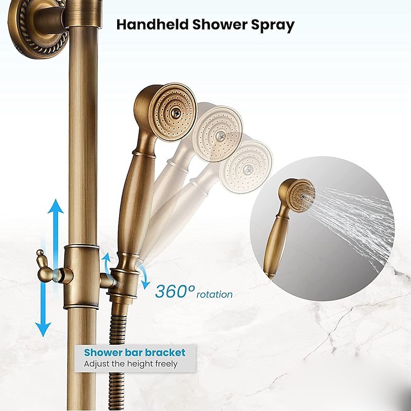 Stil:Vintage-Stil,Landhausstil,Funktionen:Ausziehbrause,Handbrause inklusive,Wasserfall,Wasserhahn Typ:Duschsystem,Installationstyp:Außenmontage,Kalt- und Warmschalter:Ja,Ventiltyp:Keramikventil,Finish:Antikes Messing,Speziell ausgewählte Produkte:COD,