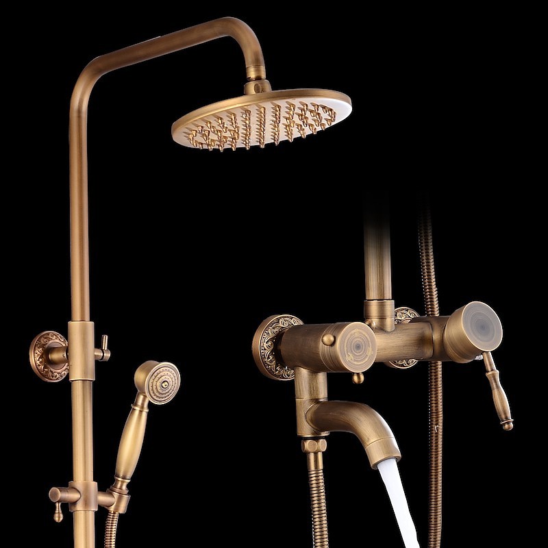 Stil:Vintage-Stil,Landhausstil,Funktionen:Ausziehbrause,Handbrause inklusive,Wasserfall,Wasserhahn Typ:Duschsystem,Installationstyp:Außenmontage,Kalt- und Warmschalter:Ja,Ventiltyp:Keramikventil,Finish:Antikes Messing,Speziell ausgewählte Produkte:COD,