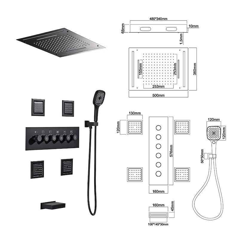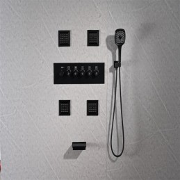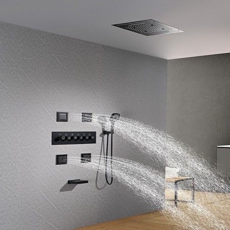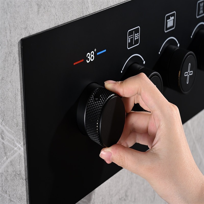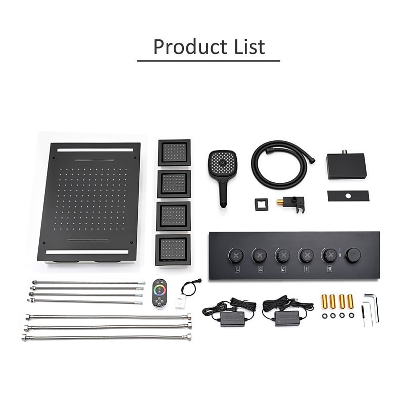 Stil:Zeitgenössisch,Funktionen:Dusche mit mehreren Sprühdüsen,Regendusche,Wasserfall,Wasserhahntyp:Body-Jet-Massage,Thermostatisches Mischventil,Regenduschkopfsystem,Installationstyp:Innenmontage,Ventiltyp:Messingventil,Oberfläche:Lackierte Oberflächen,Netzteiloption:UK-Adapter,EU-Adapter,US-Adapter,