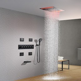 Regendusche System Thermostatmischer Body Jet Massage Wasserfall Lackierte Oberflächen Halterung Duscharmatur