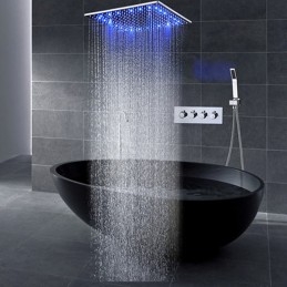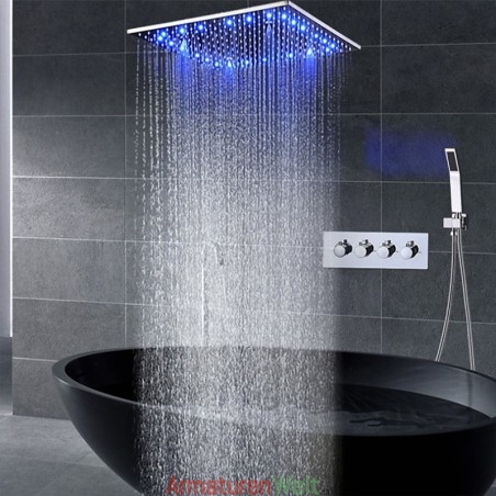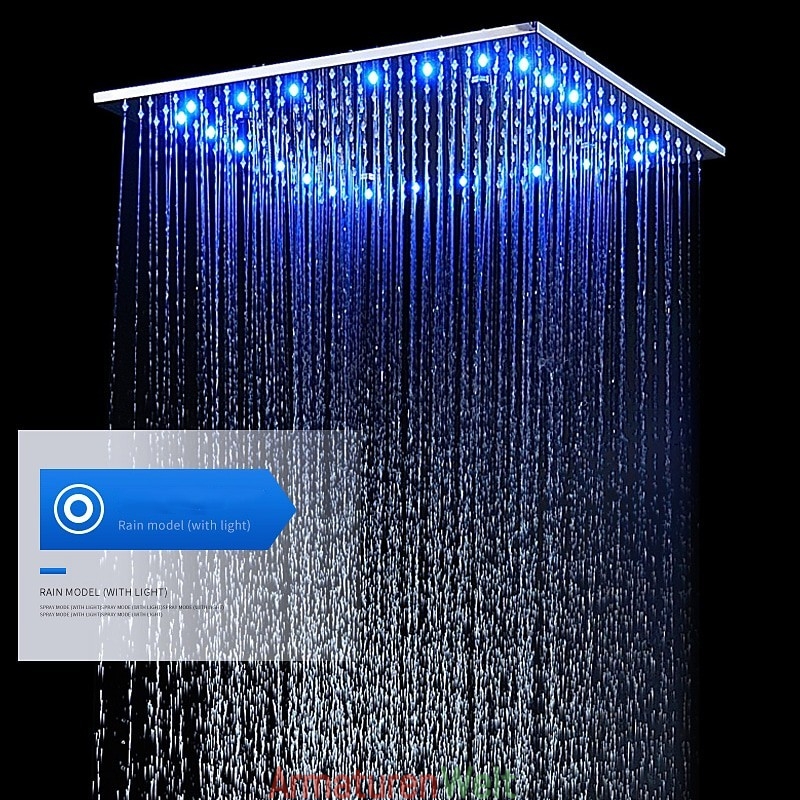 Stil:Zeitgenössisch,Funktionen:Dusche mit mehreren Sprühdüsen,Regendusche,Fest montiert,LED,Handbrause inklusive,Wasserhahntyp:Duschhahn,Regenduschkopfsystem,Installationstyp:Deckenmontage,Ventiltyp:Keramikventil,Finish:Chrom,