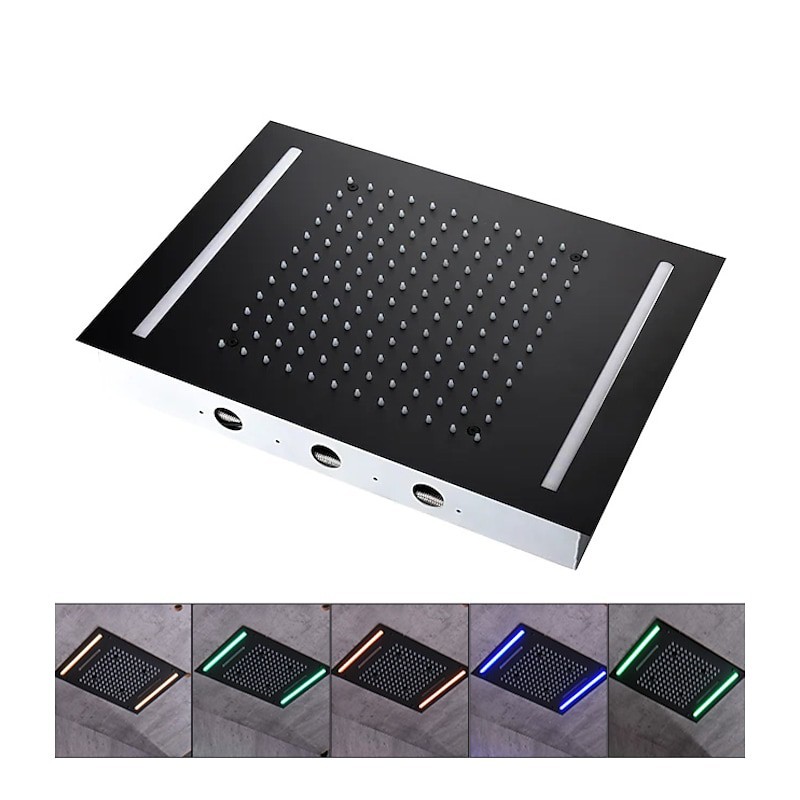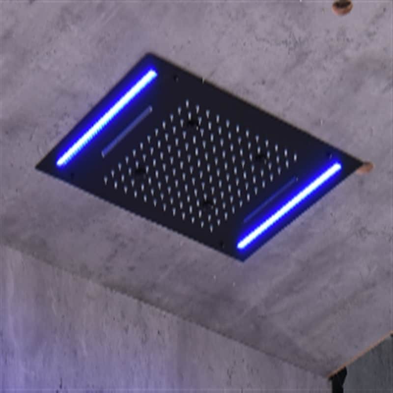 Mattschwarzer Badezimmer-Wasserhahn, Regendusche, komplett, mehrfarbiger LED-Duschkopf, Duscharmatur
