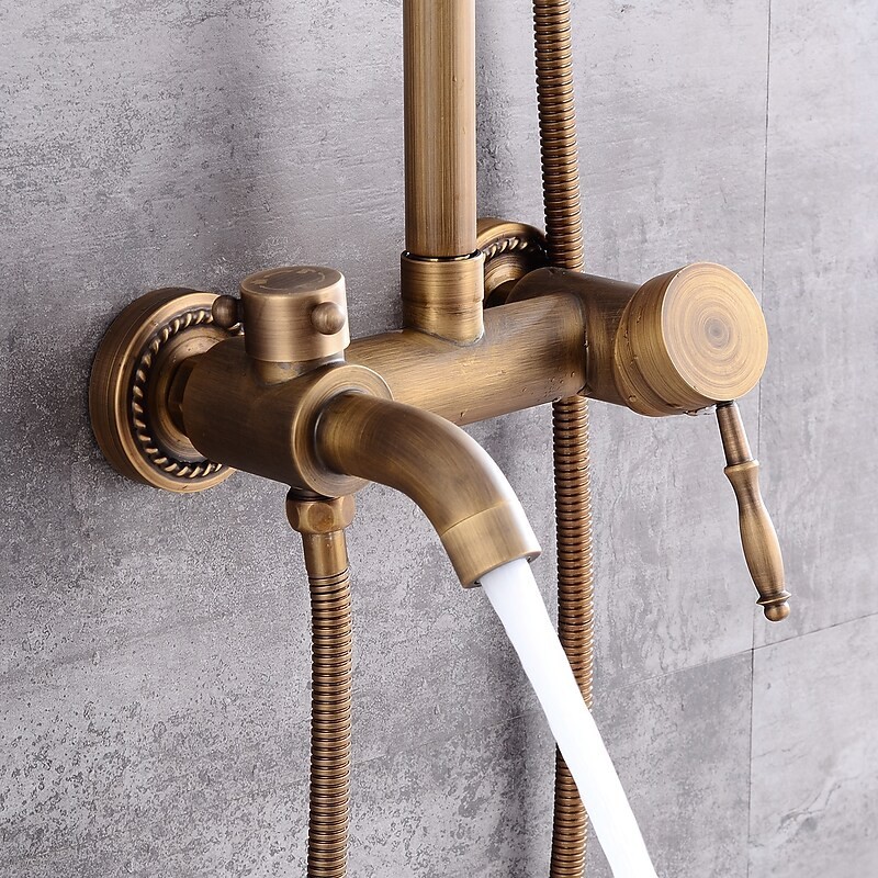 Stil:Vintage-Stil,Landhausstil,Funktionen:Handbrause enthalten,Wasserfall,Dusche mit mehreren Sprühdüsen,Regendusche,Ausziehbrause,Wasserhahntyp:Regenbrausensystem,Duschsystem,Installationstyp:Außenmontage,Kalt- und Warmschalter:Ja,Ventiltyp:Keramikventil,Finish:Antikes Messing,