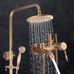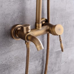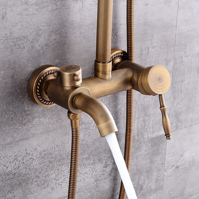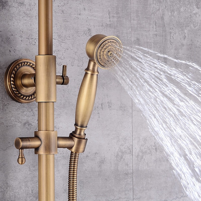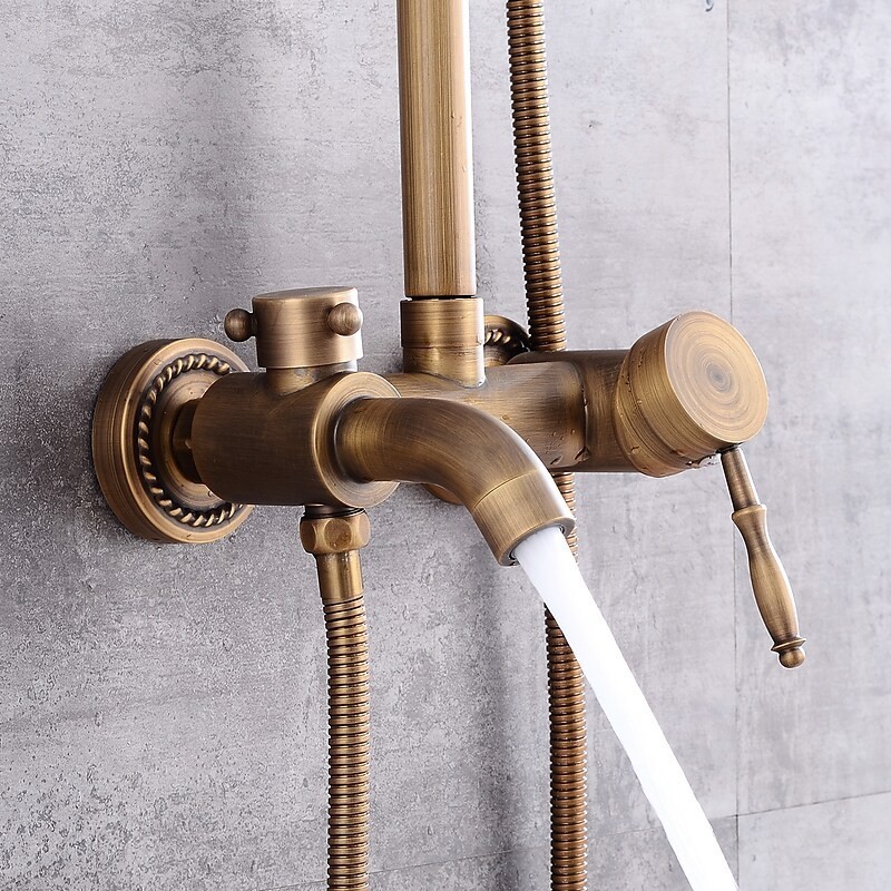 Stil:Vintage-Stil,Landhausstil,Funktionen:Ausziehbrause,Handbrause inklusive,Wasserfall,Wasserhahn Typ:Duschsystem,Installationstyp:Außenmontage,Kalt- und Warmschalter:Ja,Ventiltyp:Keramikventil,Finish:Antikes Messing,
