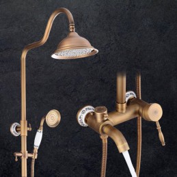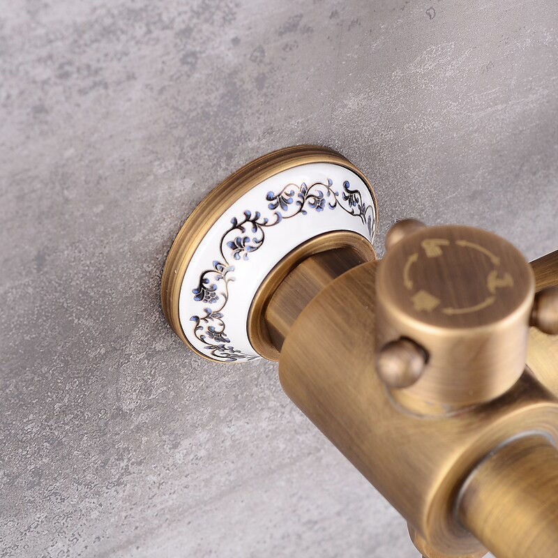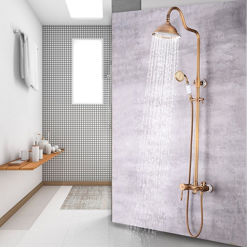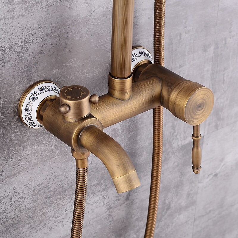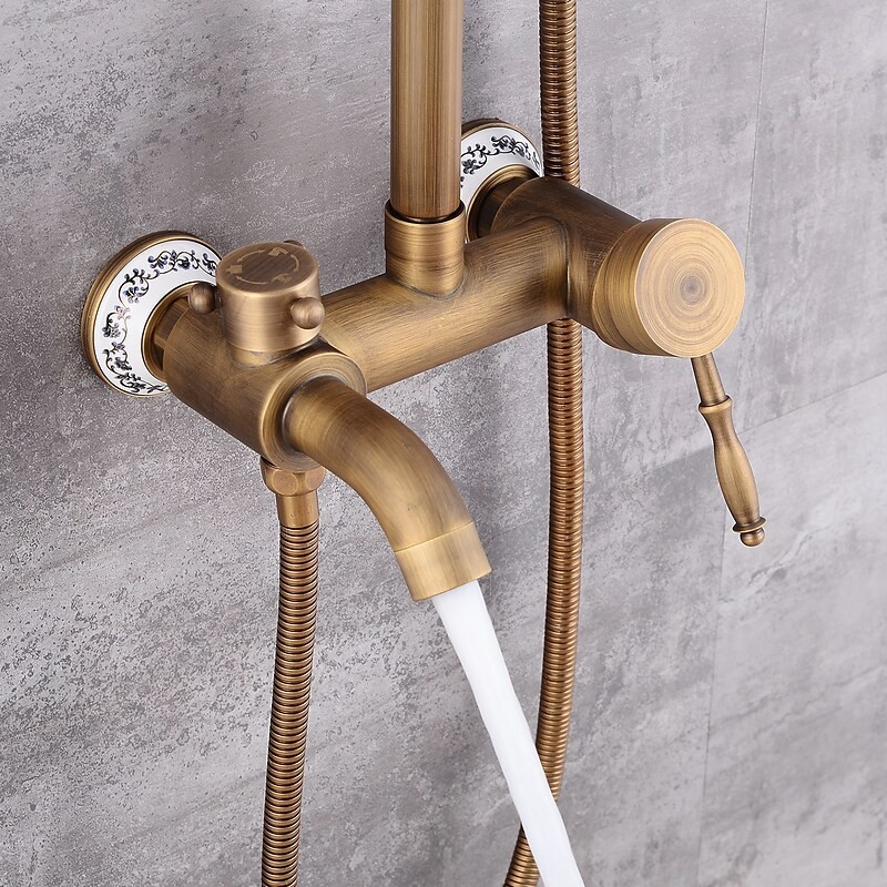 Stil:Vintage-Stil,Landhausstil,Funktionen:Ausziehbrause,Handbrause inklusive,Wasserfall,Wasserhahn Typ:Duschsystem,Installationstyp:Außenmontage,Kalt- und Warmschalter:Ja,Ventiltyp:Keramikventil,Finish:Antikes Messing,