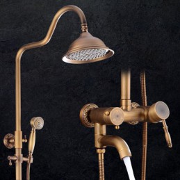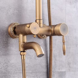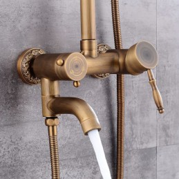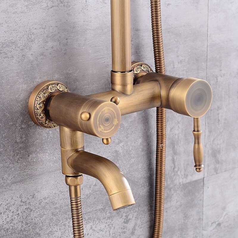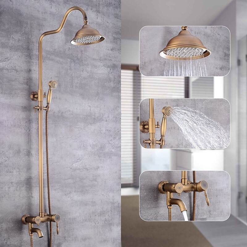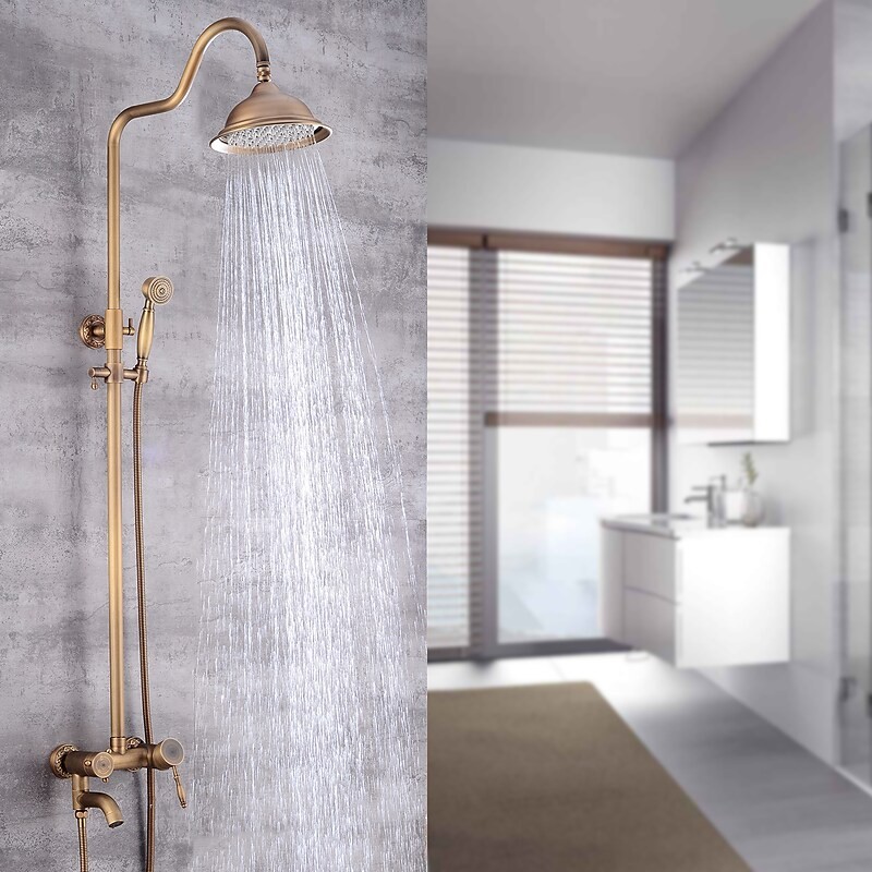 Stil:Vintage-Stil,Landhausstil,Funktionen:Ausziehbrause,Handbrause inklusive,Wasserfall,Wasserhahn Typ:Duschsystem,Installationstyp:Innenmontage,Kalt- und Warmschalter:Ja,Ventiltyp:Keramikventil,Finish:Antikes Messing,