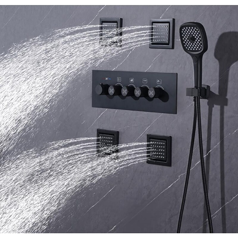 4-Funktions-Thermostat-Mischventil Body Jet Massage Regendusche Wasserfall Lackierte Oberflächen Montage Duscharmatur