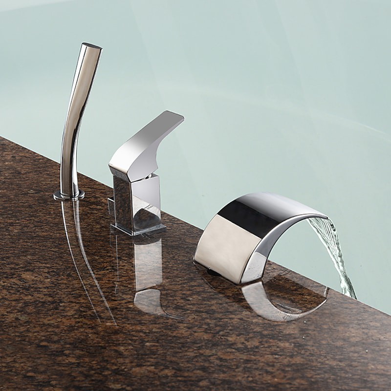 Stil:Zeitgenössisch,Funktionen:Handbrause enthalten,Wasserfall,Wasserhahntyp:Badewanne Wasserhahn,Installationstyp:Römische Wanne,Anzahl der Griffe:Einzelgriff,Durchflussrate (L/min):1,5 (5,7),Kalt- und Warmschalter:Ja,Ventiltyp:Keramikventil,Oberfläche:Chrom,Geeignete Räume:Badezimmer,Montagelöcher und Griffe:Einzelgriff Drei Löcher,