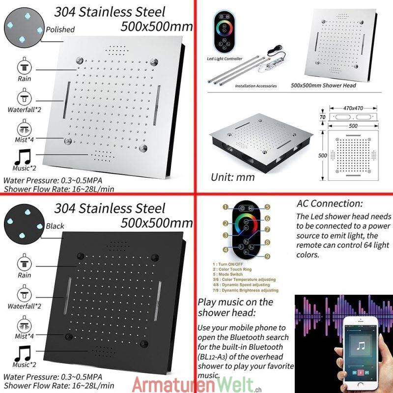 | Material des Duschkopfs | Edelstahl |