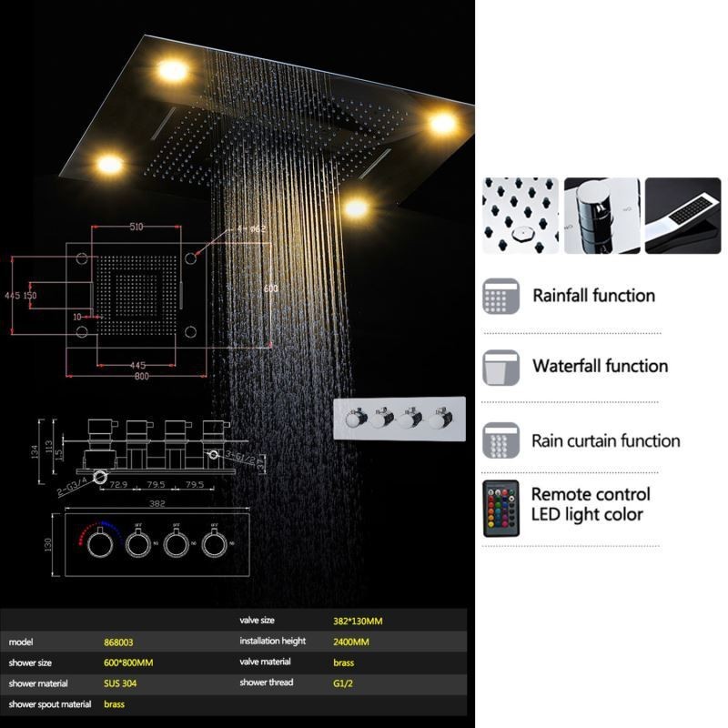 | Abmessungen des Duschkopfs | 23,62 x 31,50 Zoll (600 x 800 mm) |