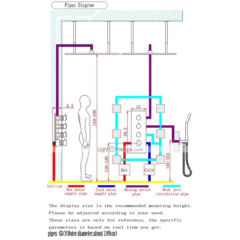 Gesamthöhe (cm):48,3*48,2*30,3,Breite des Duschkopfs (cm):40*40*5,