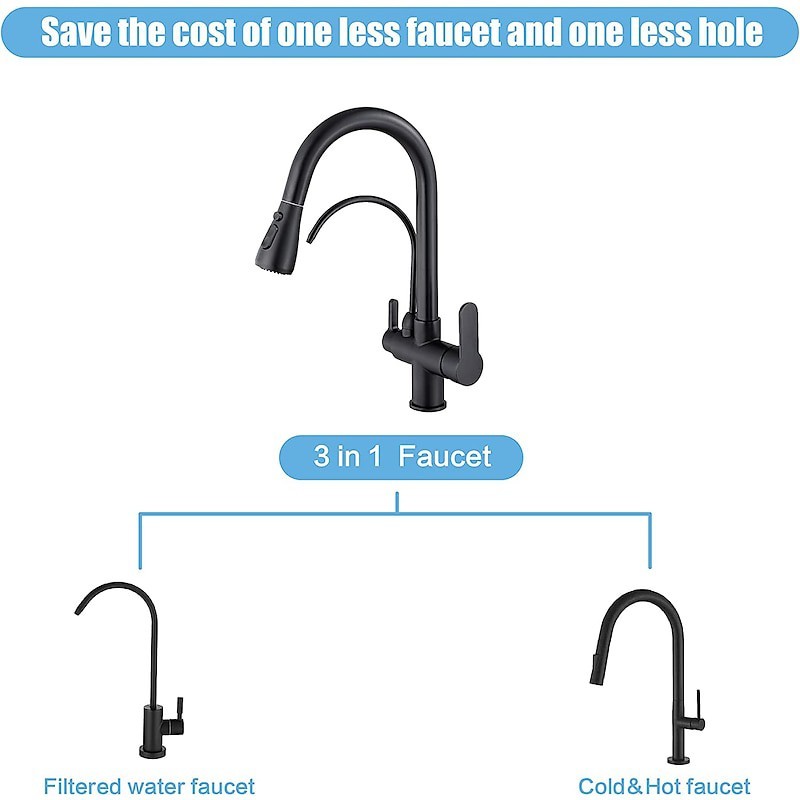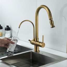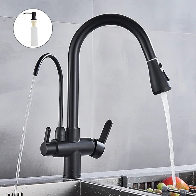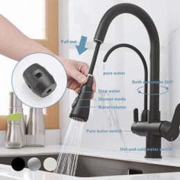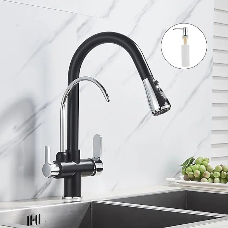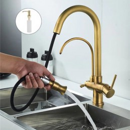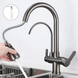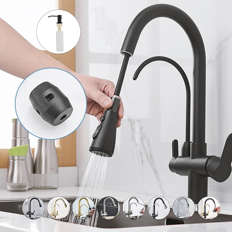 Küchenspüle Mischbatterie Pull Out Pull Down Deck montiert Heiß Kalt Wasser Schlauch Filter Messing Wasserhahn
