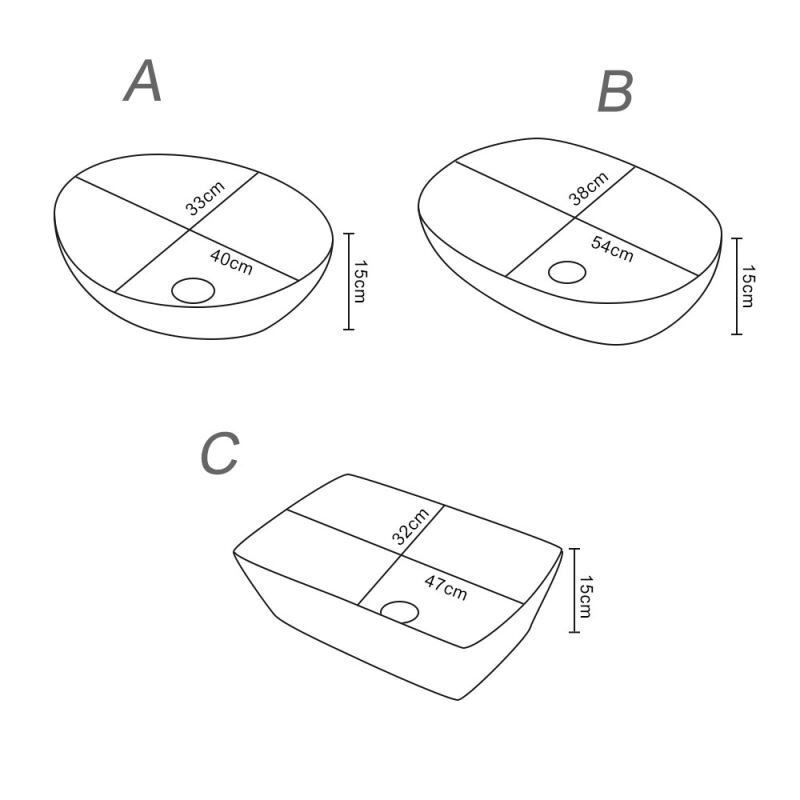 | Produktmaße | A: 40 x 33 x 15 cm B:47*32*15cm C:54*38*15cm |